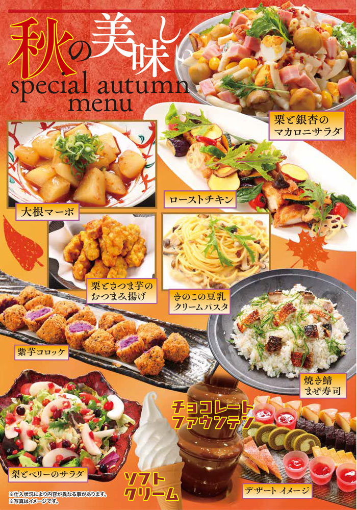 様々なお料理を楽しめるお惣菜ビュッフェ。季節ごとの旬の食材を使用したお料理も楽しめます。お子様もうれしいファミリメニューも充実しています。