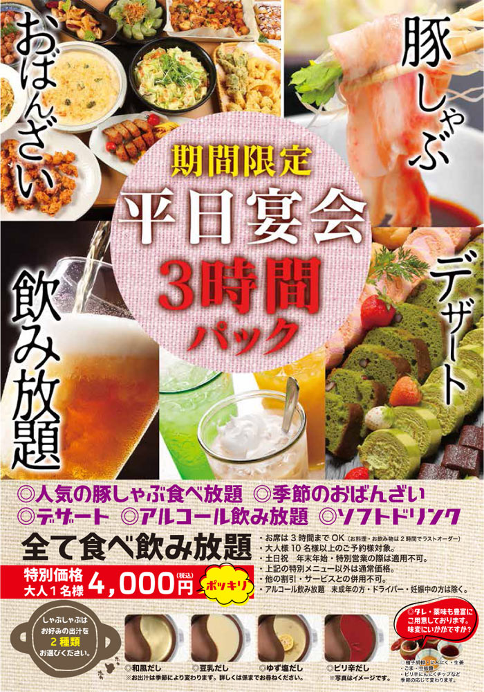 - 豚しゃぶのご注文時間は90分間とさせていただきます。